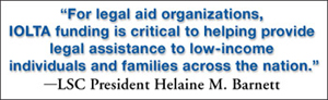 Senator Kamala Harris: “Legal Services Corporation is critical to ensuring that every American, regardless of their circumstance, can rely on that great American promise of equal justice under law. I’m proud that Bay Area Legal Aid, Legal Aid Society of Orange County and Neighborhood Legal Services of Los Angeles County are being supported by LSC and Congressional funding, and will bring more justice and access to justice to Californians.”
