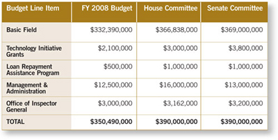 The Appropriations Committees of both houses of Congress have recommended $390 million for LSC's FY 2009 budget-a $40 million, or 11 percent, increase over current funding levels.