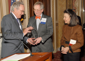 Senator Tom Harkin receives his award from Strickland and Barnett.