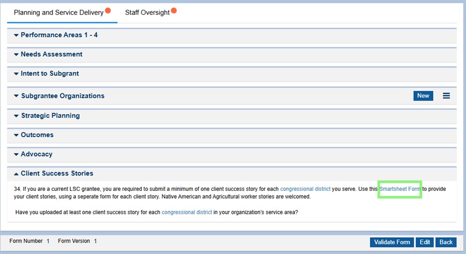 Figure 22: Image of Selecting the Client Success Stories Smartsheet Form Link